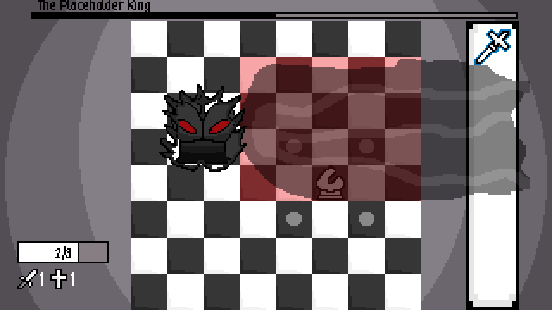 Battle a series of unique bosses, based on the 6 pieces from chess! (Note: This is an early access version, so there is only one boss.)